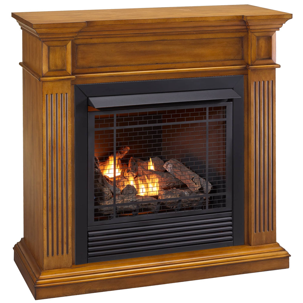 The Duluth Forge Ventless Fireplace provides a beautiful and real flame. It features realistic fiber ceramic logs for a stunning home experience. Make your house feel like home with our Furniture Grade Quality Fireplace Mantel and Full-Size Duluth Forge Dual Fuel Ventless Gas Fireplace Insert. The product is made to produce up to 32,000 BTU of heat, enough to heat 1,500 square feet of living space.